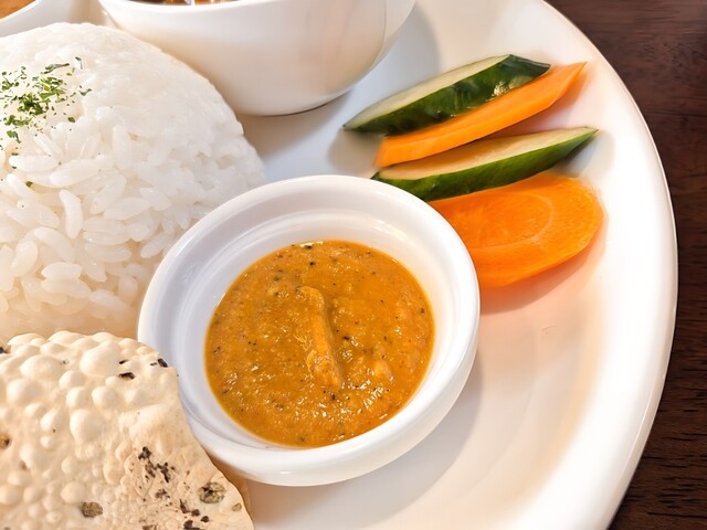 ダルカレーは豆の風味がやわらかく、後からスパイスがじんわりと広がる。