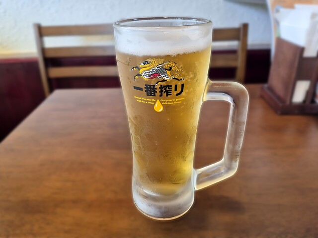 衣の香ばしさとマヨの甘みが、泡の苦みでふっと消えていく。