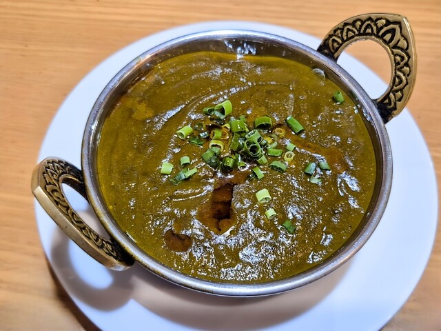 また、一般的なインネパ店でよく見かける、鮮やかな緑色のサグ系と比べて、その色味は明らかに異なる。