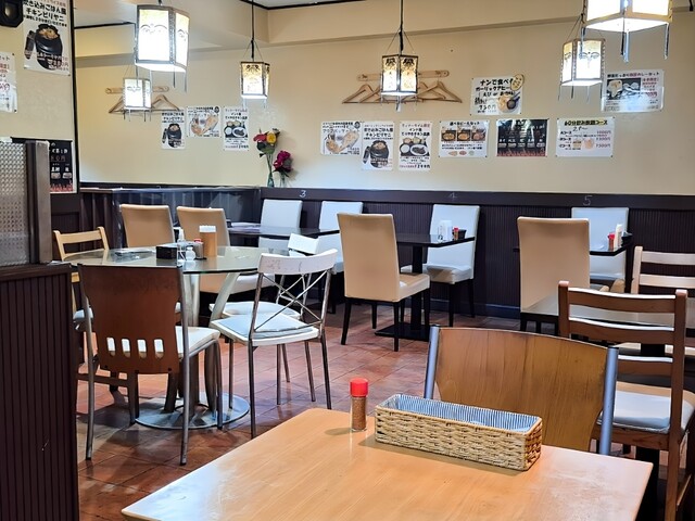 店内はゆったりとしており、テーブル間隔も広めで落ち着いて食事ができる。