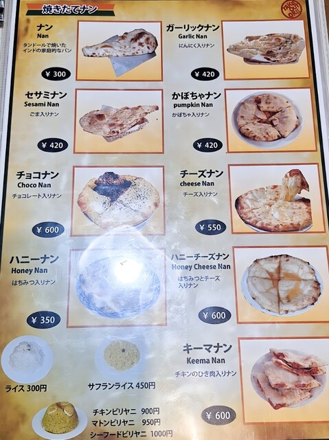 焼きたてナン メニュー