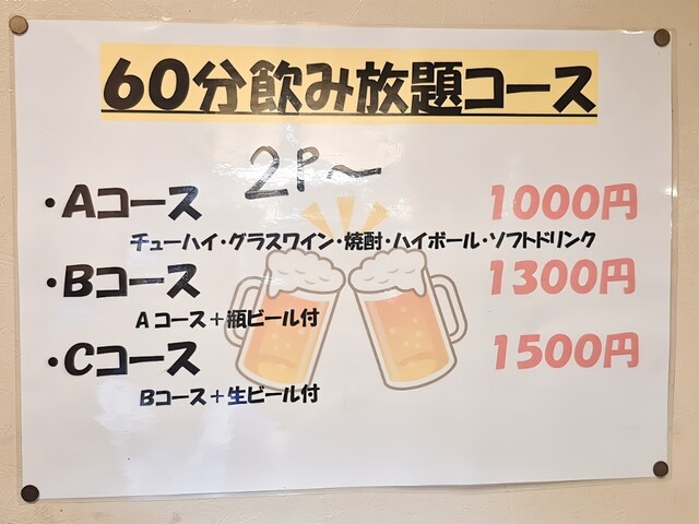 60分飲み放題コースの店内掲示