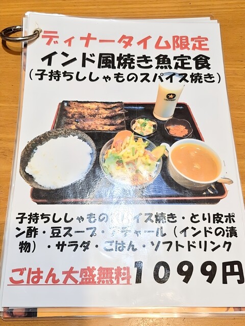 インド風焼き魚定食 メニュー