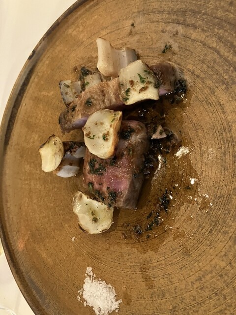 美味しいお肉が食べたくなり、以前から来てみたいと思っていた上さんに初来訪。ランチ特別おまかせコースを事前予約済みである。お店はカウンターが6席と個室が一つの比較的小さなお店であり、内装は高級感あふれる...
