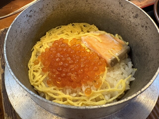 オーダーしてから釜飯を作るようで20分ほどかかりますが、とても美味しいので行かれたら是非!とおすすめします。釜飯は三種類から選べるようで、私は鮭といくらをオーダーしましたが、食べ終えた折からまた食べたくなりました。