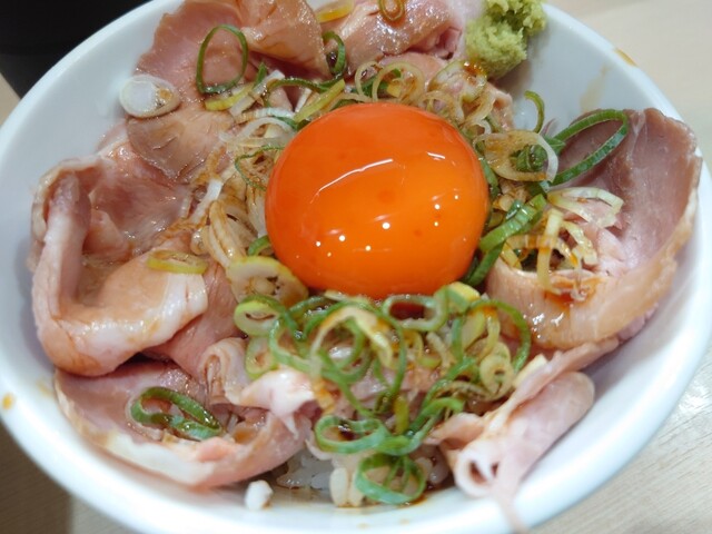 ローストポークが5枚程度乗っていて、卵黄+山葵付きという仕様がよかったです。