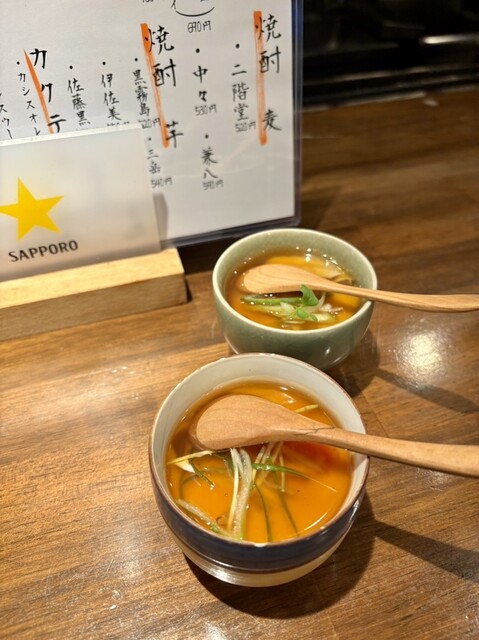 お通しのあんかけ茶碗蒸しがめちゃくちゃ美味しかった始まりから通常メニューとは別にホワイトボードのメニューにあった軍鶏頼んでみたら想像以上に美味しかった