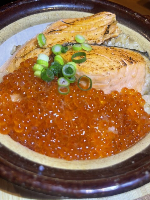 雰囲気が好き。鮭いくら土鍋ご飯が最高!