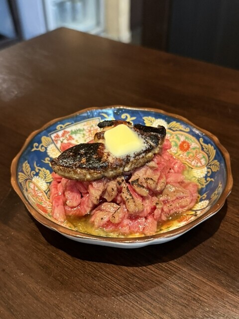 ユッケの上にフォアグラを乗せて、