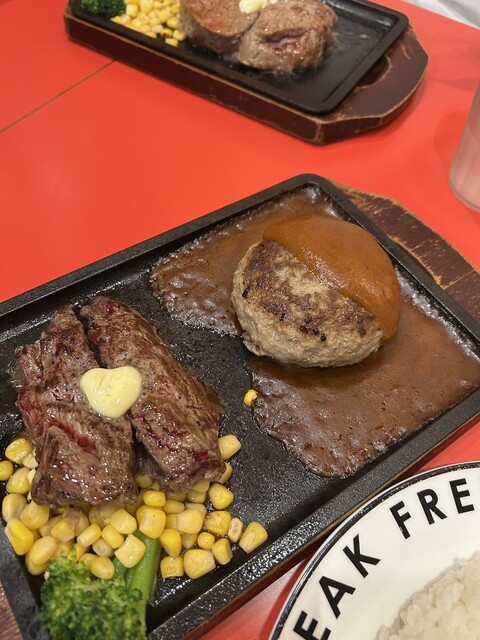 夜に友達とお疲れさん会をしに「ベラス所沢」に来ました!自分はハンバーグのデミグラスソースとランプ肉のコンボを注文しました!