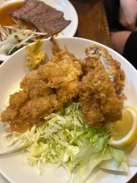 去年ぐらいから何度か通わせていただき大変気に入っているこちらのお店なのですが、今回はいつもと同じカウンター席ではなくてお店の向かいにある個室を利用させていただきました。キャパは5名ぐらいの広さでちょうど良い感じ。こちらは紙タバコもOKということで喫煙軍団でまったりと美味い料理と美味い酒を堪能出来ます。まさに安住の地。刺身やおでんが美味いのは言わずもがなですが、こちらの真骨頂は揚げ物にあり。初めて食ったチキンカツが抜群に美味かったです。また次回も色々よろしくお願いいたします。