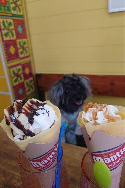クレープ全般のレベルが非常に高くて美味しい。特に生地はフードコート的なところと比較すると差がわかりますね。犬連れもOKでランチもチキンオーバーライスやカレー、唐揚げなどそこそこ種類もあって普段使いも可能です(゚∀゚)元自転車屋さんの建物をそのまま使っている構造上、冷房の効きはあまり良くなかったかもしれませんが、クレープのクオリティが高いので許せます(笑)持ち帰りも出来るので、予め電話で頼んでおいたら待たずにいけますよ。お気に入りのお店です♪