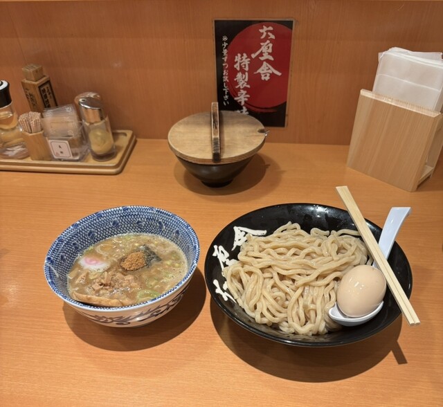 東京に来て東京駅で気になってた六厘舎のつけ麺を食べに伺った。18時30分にお店に着いて、30分待ちだった。食券を買うシステム。今日は特製つけ麺の普通盛りを注文。カウンター席に案内され席に着き、待つ事数分で食事が提供された。早速つけ麺を一口。めちゃくちゃ美味しい。超人気店だけあって味は抜群に旨い。太麺にからむ少し甘めのスープがめちゃくちゃ合う。旨みが効いて今まで食べた中でNo. 1。チャーシューも味が染みてまた美味しい。このつけ麺が近くにあると、毎週伺いたいお店だと思う。最後にスープを出汁で薄めて全てを飲み干した。本当に満足できる一杯であった。また、並んででも食べたい一品となった。