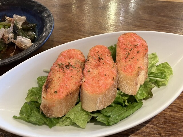 明太子バケットはカリッと香ばしく、しっかりめの明太子が食欲をそそります。