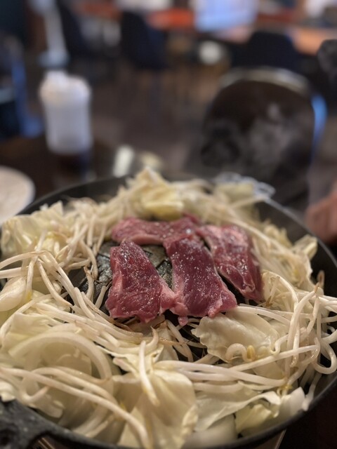 事前予約のジンギスカンは着席と同時に運ばれてきて、今まで見たラムと比べて見た目の美しさもさることながら、全く臭みがなく感動しました。