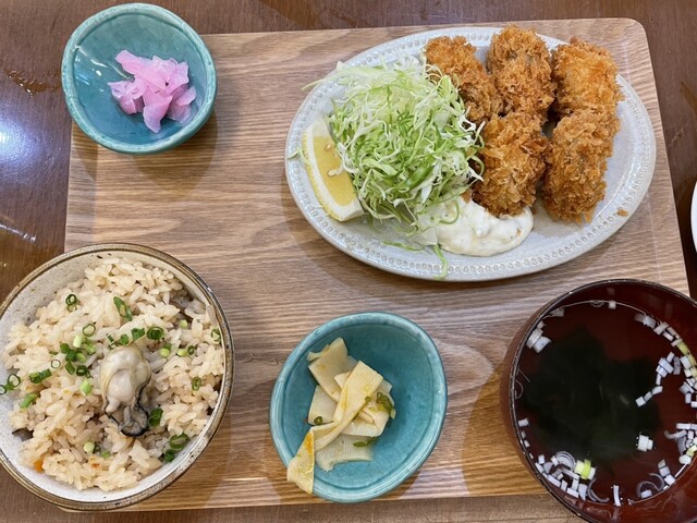 散々食べた後にランチメニューのカキフライ定食のご飯を牡蠣飯に変えて食べました。