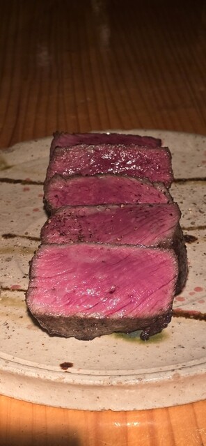 木箱に入った肉は猪やラム、エイジングビーフも美味しくいただけました。焼き加減もちょうど良いミディアムレアで良い感じでした。
