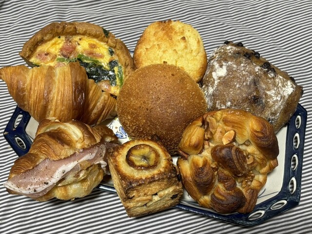 ボリュームたっぷりのキッシュやチョコバナナのスコーン、生ハムとポテトのサンドなど、バラエティに富んでいて、パン好きにはたまりません。