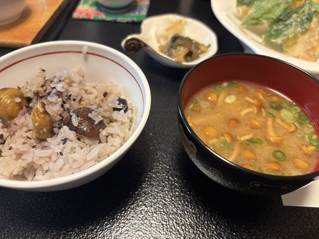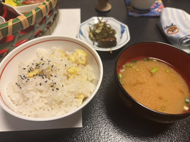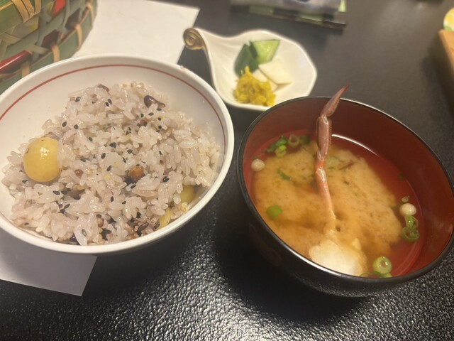 渡り蟹の味噌汁、銀杏の炊き込みご飯、香の物