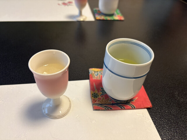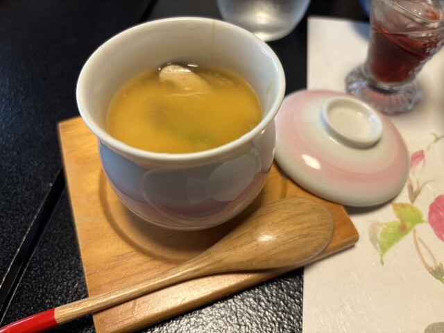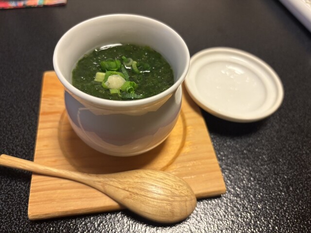 牡蠣と銀杏の茶碗蒸し(たっぷりの青のりとネギがアクセントで美味しい!)
