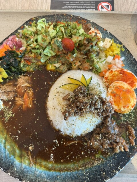 ボタニカレーにクリームチーズ豆腐と玉子ピクルスをトッピングで足して1,440円でした。初めて食べましたが、これはもう、感動の域に達する素晴らしいカレーでした。彩り豊富で目に鮮やかなだけでなく、味も複雑かつ変化に富んでいて、大満足しました。