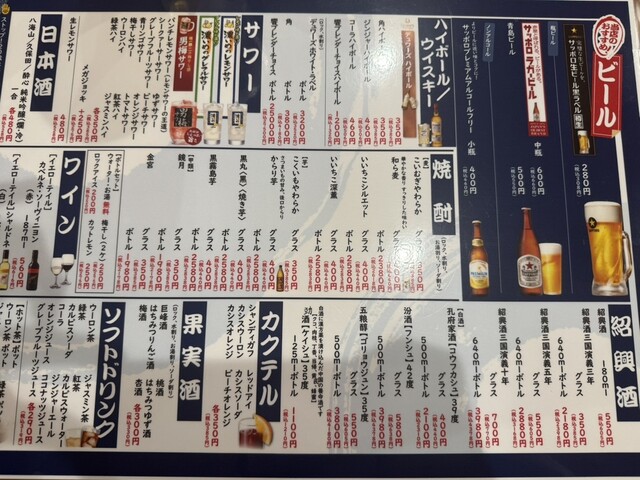 生ビール¥290と破格の値段です。そのほかのお酒も安い。
