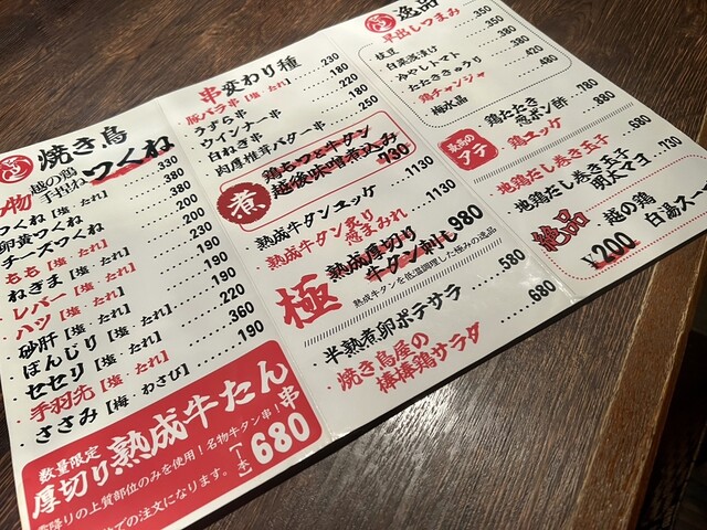 店頭に着いた瞬間から香ばしい炭火の香りが素晴らしく、焼き担当のスタッフの方が笑顔で迎えてくれました。炭火で焼くという焼き鳥はメニューが豊富で迷ってしまうほど。