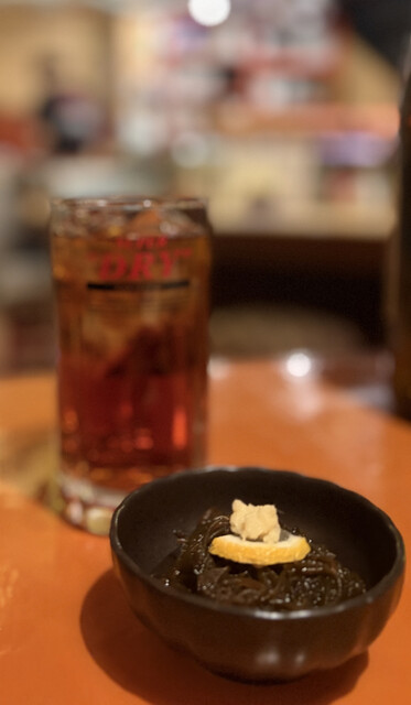 お通しがもずくというのも良いですね。お店で三杯酢に漬けているのだそうです。