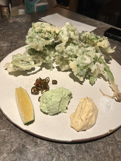 気になるメニューいっぱいあって、その中でもパクチーのフリットを注文。