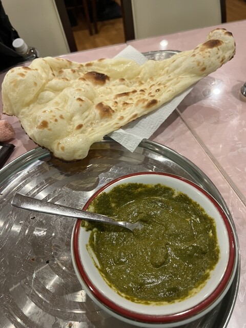 東京都江戸川区のムンバイキッチンインドレストランでランチAセットを注文。ほうれん草チキンカレーはまろやかでコク深く、マンゴーラッシーも甘さ控えめで飲みやすい。ランチはナン食べ放題で2枚おかわりして大満...