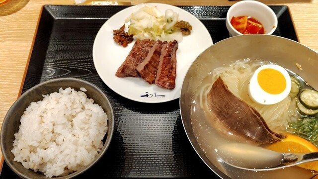 冷麺と麦飯と牛タン厚切りのセットは