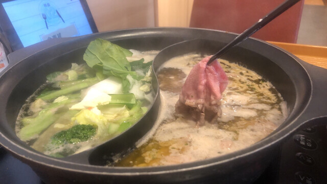 ランチ牛豚コース2309円注文。11時くらいだったけど、今日は家族連れで賑わってました。1人は自分くらい(*^^*)。ある意味贅沢。野菜が少し変わった気がするけど、物価高だからしょうがないかな。牛肉7箱注文して、ご飯とって、野菜いれて、牛肉追加して、計10箱で止まった。肉とご飯とポン酢があると、人間て幸せに感じるんだなと思いました。あと店員さん可愛かった。女の子のお客さんも多い気がしました。ストレス溜まったら、気分転換にしゃぶおすすめかな。真面目にしゃぶ葉付き合ってくれる彼女探そうかな。