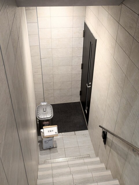 石の階段を折りた場所にお店があるため場所は分かりづらいです。入口が開き戸なので余計にお店だとは一目では分からず、ちょっと隠れ家みたいな場所にあります。