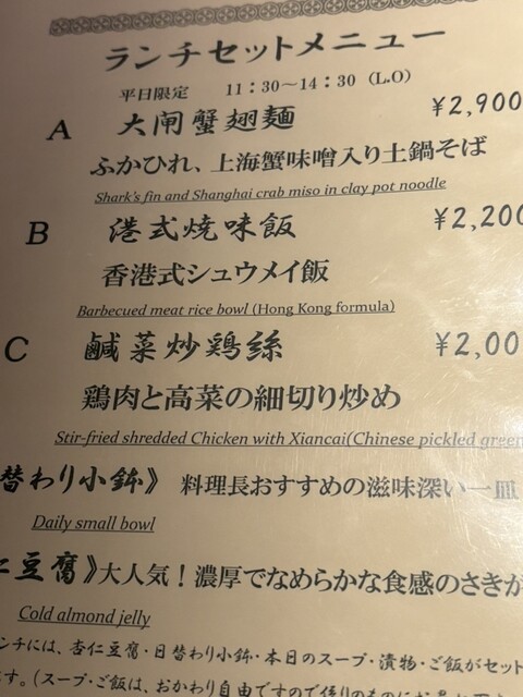 フカヒレが目玉のお店ですが、ランチはBが好評みたいです