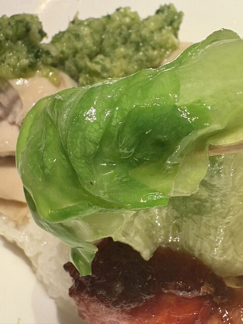 淡白な薄味の蒸し鶏がほとんど噛まな いほど柔らかい。上にかけられたネギのタレがピリッとアクセントになりすごく相性が良い