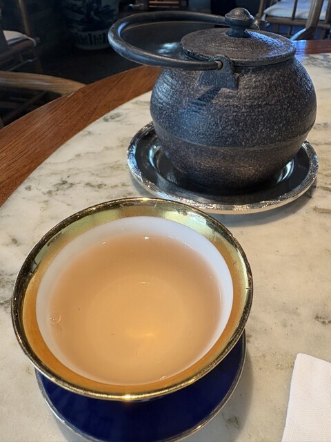 烏龍茶は、鉄瓶で提供され、何度も差し湯してくれます