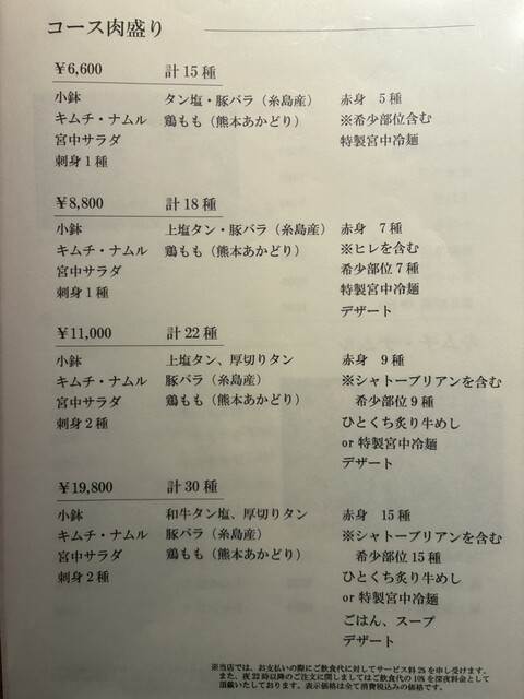 まずは予約させていただいた時に1番人気のコース11,000円のコース肉盛りを注文していた為、予約名をお伝えすると来店してすぐに個室のお部屋へ案内され、コースの説明を受けドリンクの注文をしました!