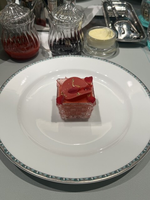 席の利用時間は1時間45分でしたが、入店からスタートまでに時間を要した分、やや短く感じました。最後にはケーキのお皿にバラを散らしてくださったり、丁寧に料理の説明もしてくださったりと、サービス面も非常に良く、満足度の高い体験でした。