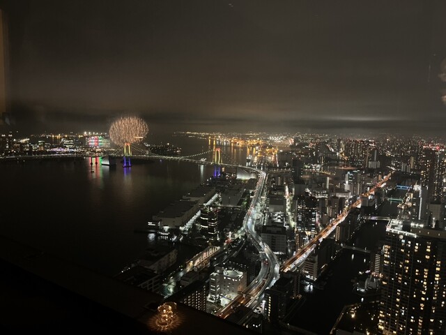 昼はずっと雨で視界も悪かったのですが、食べている間に雨が止まって視界もよくなってきて、結構いい写真撮りました。お台場レインボー花火もテラスで見れましたので、体験としてはまた満点ですね
