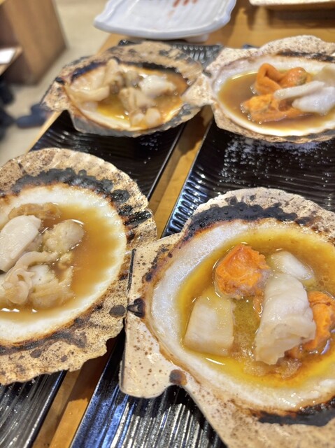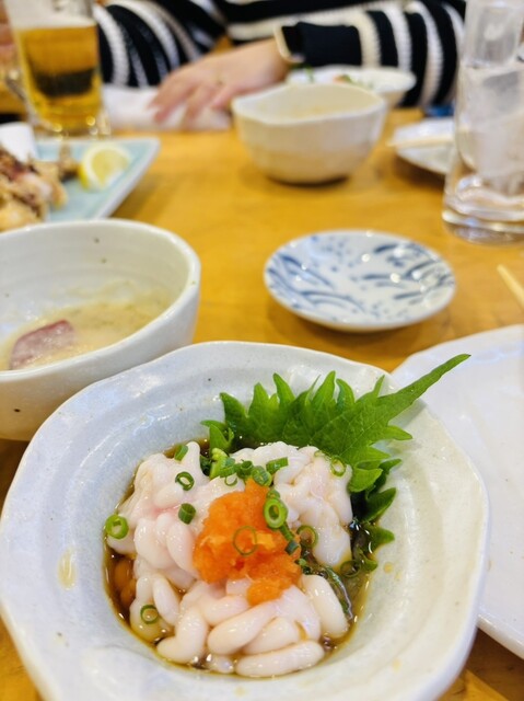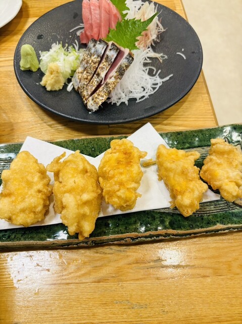 蒸し牡蠣、白子ぽん酢、中トロ、ピザ、ふきのとう天ぷら