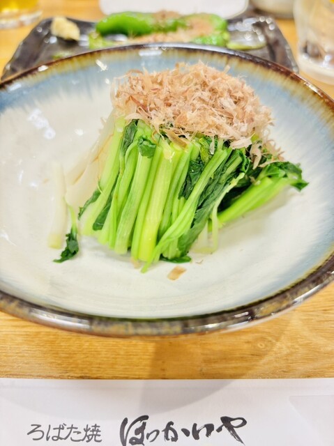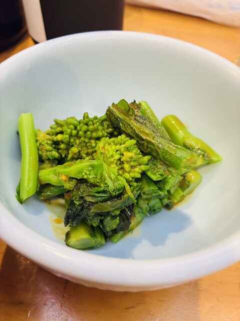 注文した物:菜の花おひたし、もつ煮、エビフライ