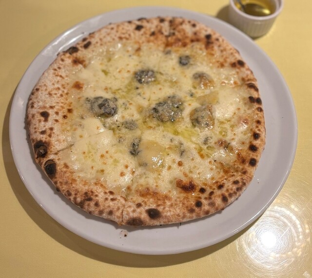 さてピザでいえば王道のマルゲリータは間違いないだろうし、大好きなゴルゴンゾーラは本命ですし、変化球だけど魅力的なビアンケッティも捨てがたいです。難渋した結果、本命ゴルゴンゾーラにしました。ピリ辛チーズに蜂蜜の甘味が合わさった時の美味しさは例えようがありません。