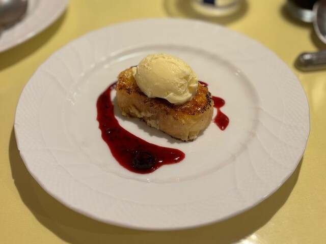 ゴルゴンゾーラのピザは店内の窯で焼きたて熱々で参りました。香りといい焼き加減と言い、素晴らしく、うっとり目じりが下がります。蜂蜜をたんまりつけて、熱いうちに一口いただくと、もう天国です。フォカッチャ我慢して良かった、ナイス私、と褒めながらもパクパクいただきました。そしてモッツァレラと小エビにピスタチオソースを絡めたタリアテッレですが、これもタリアテッレの茹で加減が絶妙で、ほのかにピスタチオが香るソースが美味しかったです。やはりピザはかなりお腹がいっぱいになるので、Bsetで良かったと思いました。そしてデザートはフレンチトーストにバニラアイスがたっぷり添えられた贅沢な一品でした。もっとあっさりしたデザートかと思っていたので、最後まで満足させていただきました。スタッフの方もお忙しそうでしたが非常に丁寧な対応で、清々しかったです。
