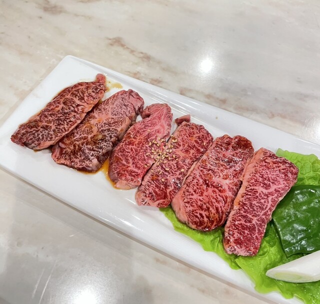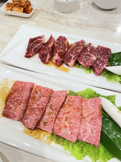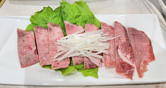 上牛タン塩、特上ハラミ、特上カルビ、上セット(上カルビ、上ハラミ、ロース)、ライス、ビビンバ、焼きビビンバ
