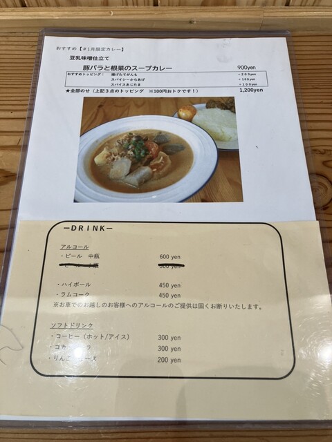 全部のせにして、揚げたてがんものセットを選びました。熱々がんも美味しかった!からあげもスパイシーで美味しかったです。豚バラや根菜がゴロっと大きくて大満足。冬に体が温まるカレー!また来月!