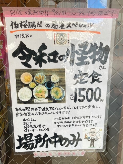大相撲の本場所中限定メニュー!これを食べに来ました。唐揚げ、ギョーザ、明石焼き、たっぷりの豚汁!小ごはんでお願いしました。どれも熱々で美味しい。ボリューム満点大満足です♬