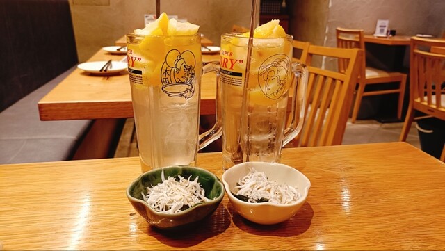 まずおすすめのフローズンレモンのたっぷりはいった塩レモンサワーで乾杯!