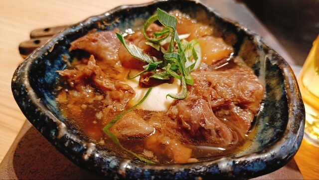 すじ煮込みは大好きなのでよく作りますが、このようなホロホロでしっくりと味が染み込んだものはさすが本職!口の中でほぼ溶けるんだけども、噛むほどに味が染み出します。美味しくて美味しくて、汁まで全部飲みました。