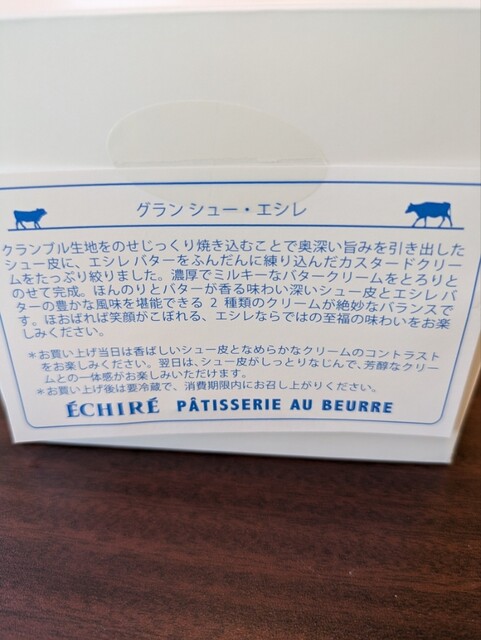 グランシューエシレ、名古屋高島屋限定シュークリーム。800円近くする。高い。でもすごく美味しい✨