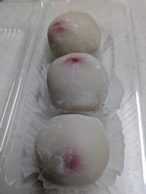 10時半訪問の際、いちご大福は11時からとのことで予約をし、再訪。1個180円。瑞々しいいちごと甘み控えめの白あん、柔らかく薄めの餅。春の幸せ。